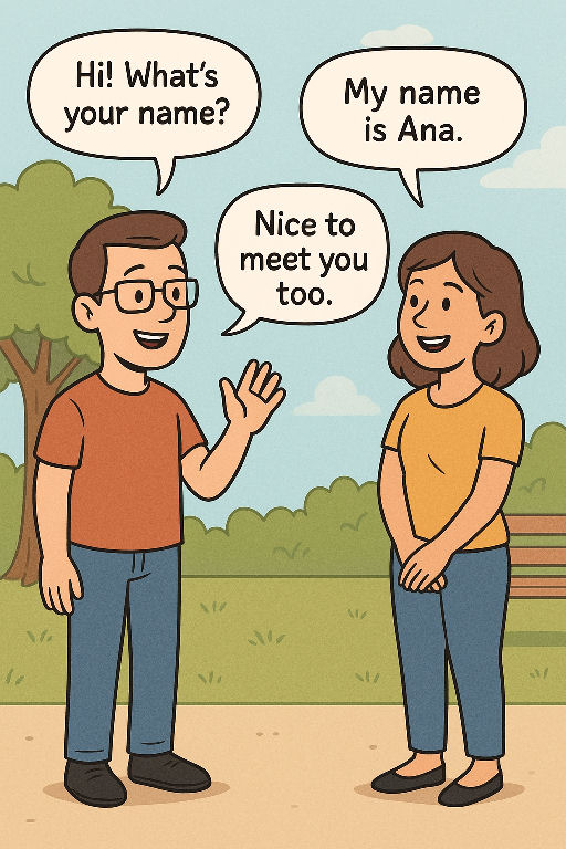 B: My name ‘s _______. A: My name’s ______. Nice to meet you.