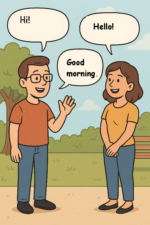 - Good morning! (Used from sunrise until 12:00 PM (noon).)
