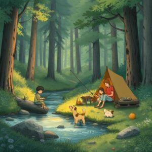| b) Spending the night outdoors in tents or RVs. | 2. Camping |
